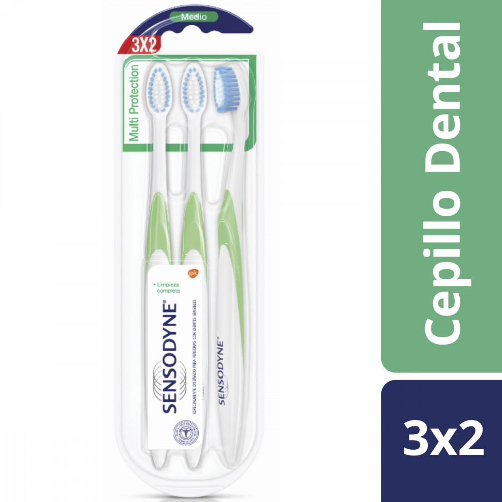 Sensodyne multi protec cepillo dental, tiene un cabezal redondo que permite llegar a áreas difíciles 3 x 2 unidades.