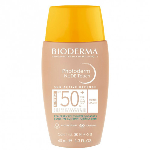 Bioderma Photoderm protector solar Nude touch factor 50 Doree, con filtros 100% minerales, reduce las imperfecciones x 40 ml