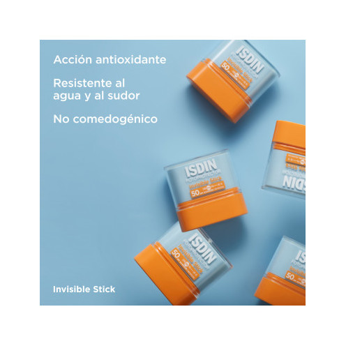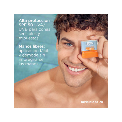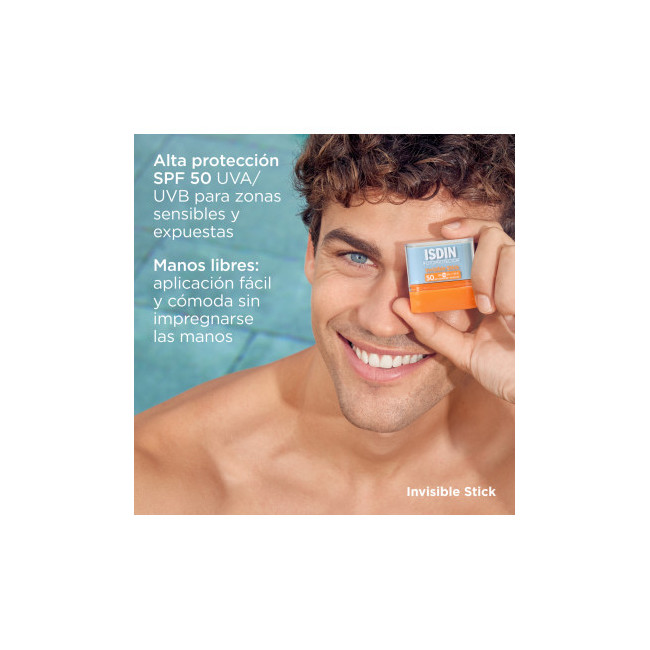 Isdin fotoprotector invisible stick factor 50, para zonas sensibles al sol que se aplica cómodamente, no deja brillo x 10 grs.