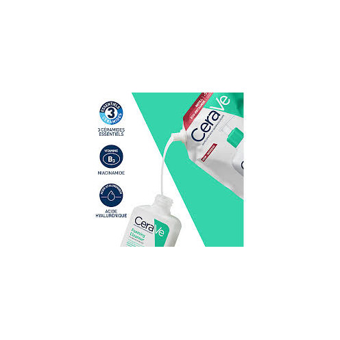 Cerave gel limpiador espumoso, ideal para eliminar el exceso de grasa, suciedad y maquillaje, envase repuesto x 473 ml.