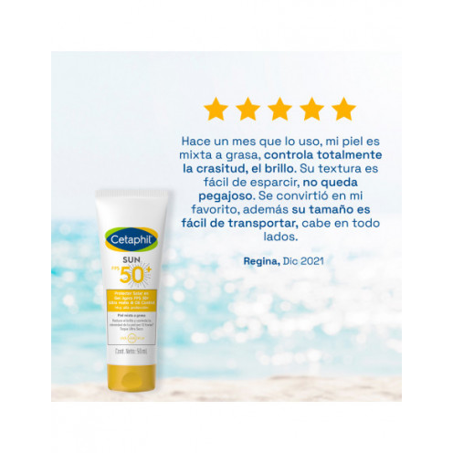 Cetaphil sun protector solar factor 50 oil control toque, reduce el brillo y controla la oleosidad x 50 ml.