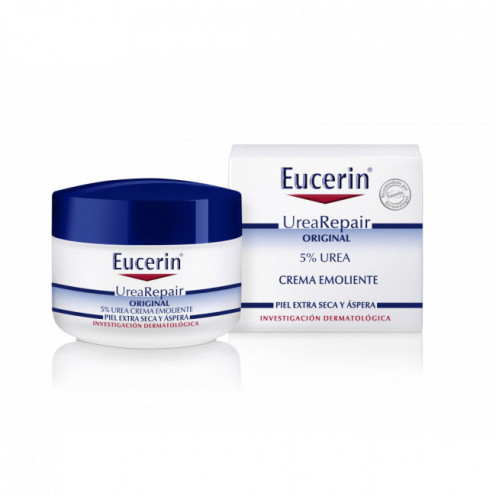 Eucerin UreaRepair Crema Urea 5% brinda hidratación intensa a la piel seca y muy seca. Se reduce notablemente la aspereza y la tirantez, brindándole a la piel un aspecto terso y elástico. Su fórmula contiene Ceramidas y Factores de hidratación Natural. También está enriquecida con Urea, un hidratante natural producido por la piel saludable, se ha demostrado clínicamente que su fórmula ayuda a fijar la humectación en la piel. Especialmente formulada para áreas problemáticas como las canillas y los codos. Libre de perfumes y colorantes, resulta adecuada como cuidado complementario para personas con Psoriasis y piel madura.