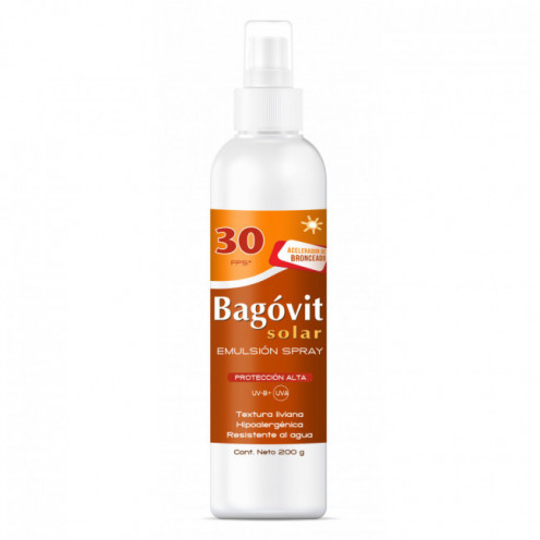 Bagovit protector solar con acelerador de bronceado factor 30 en spray x 200 grs.