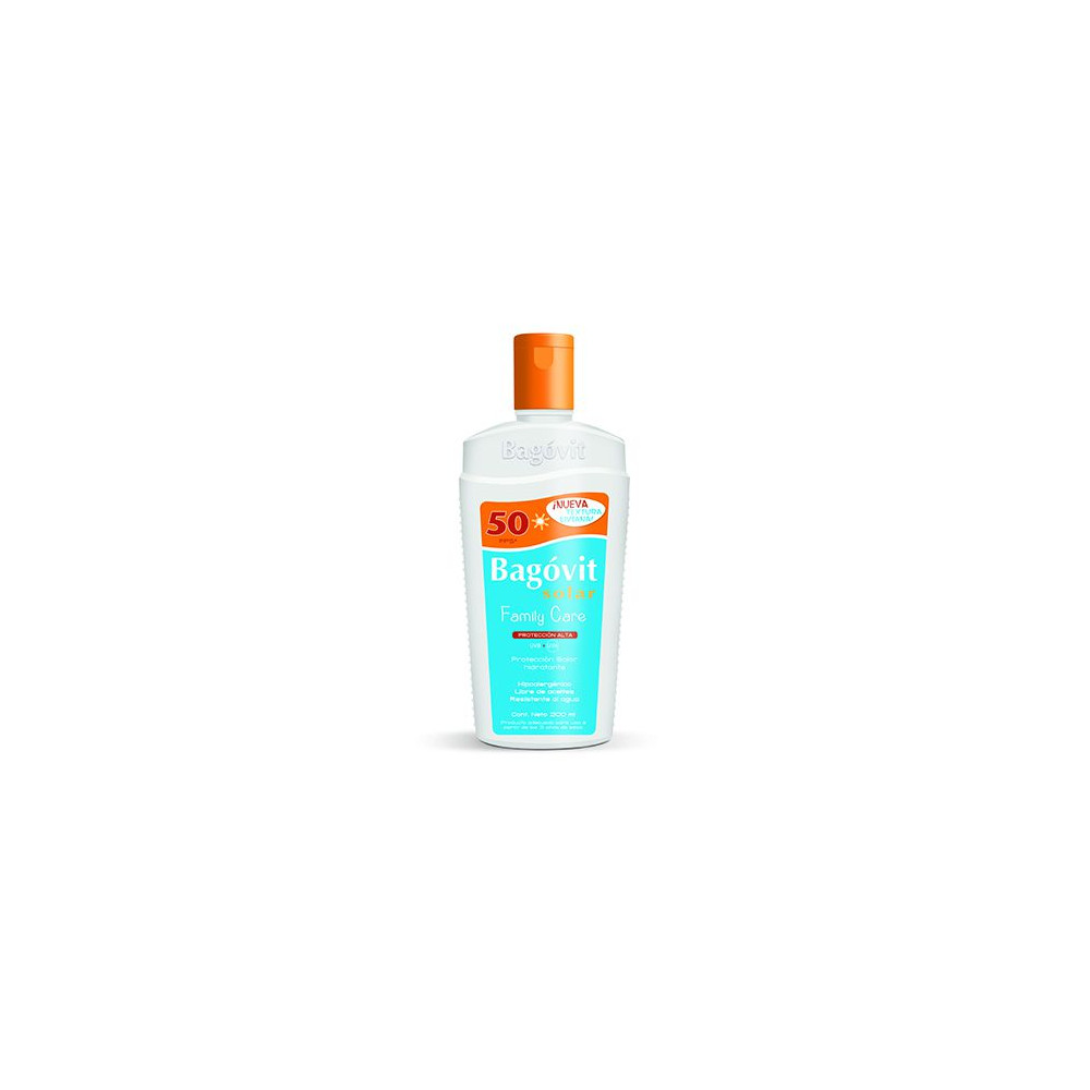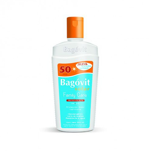 Bagovit protector solar factor 50 emulsión, textura ultra liviana, hipoalergénico y resistente al agua x 200 ml.
